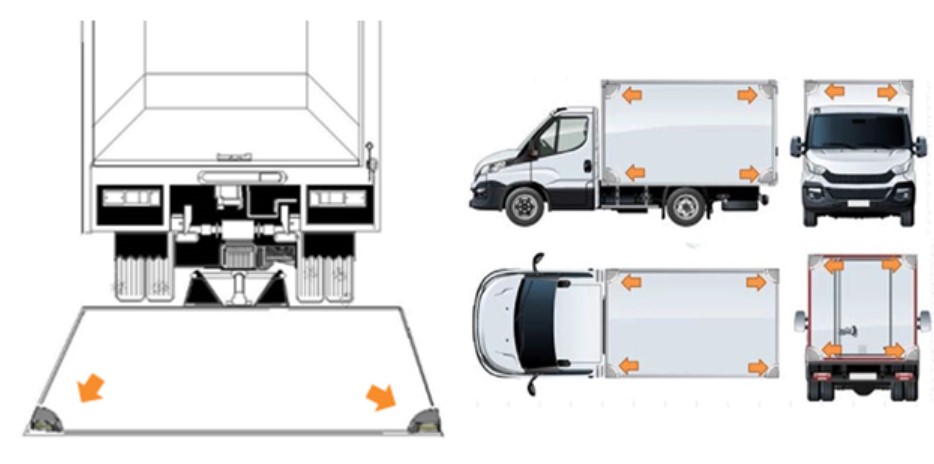 Hvis liften er i vandret position, vil bagliftens lys blinke synkronisk på liften. Lampens polaritet er beskyttet. Lampen har et lavt energiforbrug og kan anvendes på lifte med en spændingskapacitet på 12-36V